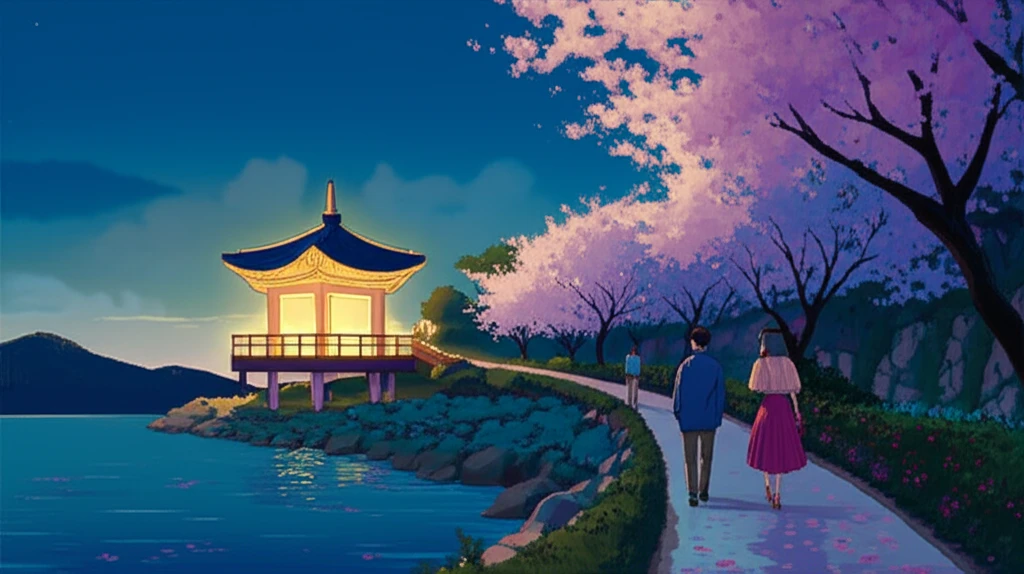2. 늦은 저녁 시간: 조명이 켜진 '밤벚꽃'과 은은한 밤바다의 조화는 낮과는 또 다른 황홀함을 선사합니다.